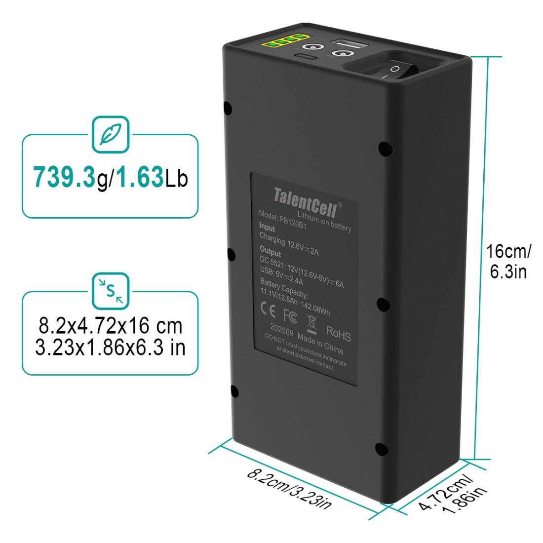 Im Kern des PB120B1 befindet sich ein 12-Volt lithium-Ionen-Batterie mit einer Nennkapazität von 12800 mAh, was einer nutzbaren Energiemenge von 142,08 Wh entspricht. Diese hohe Energiedichte ermöglicht einen längeren Betrieb im Vergleich zu herkömmlichen Akkus oder Blei-Säure-Alternativen.