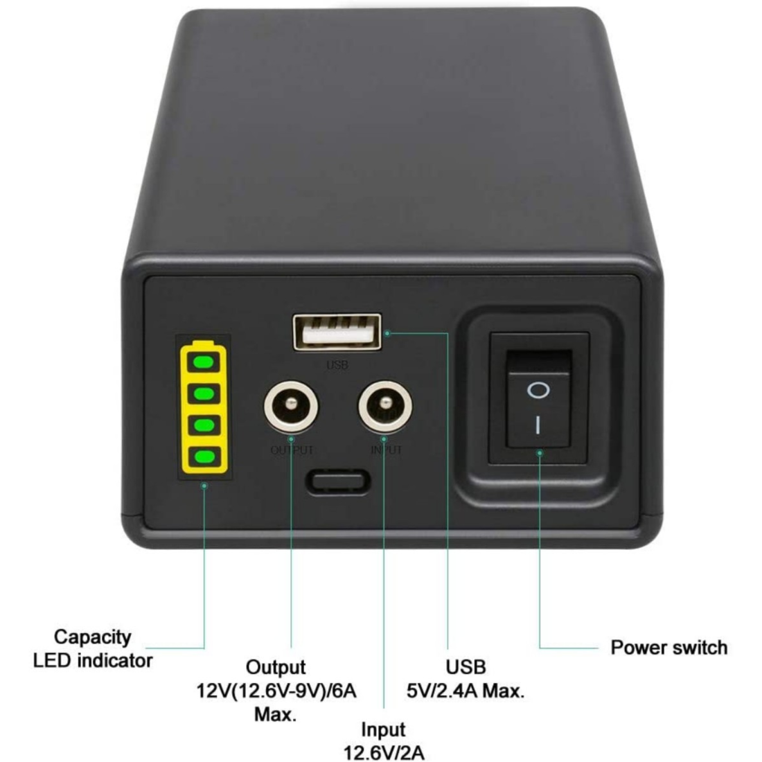 Diese Mehrfachausgangskonfiguration ermöglicht es den Nutzern, Kabelsalat zu vermeiden, mehrere Adapter zu ersetzen und mehrere Geräte über eine einzige Batterieeinheit zu betreiben.
