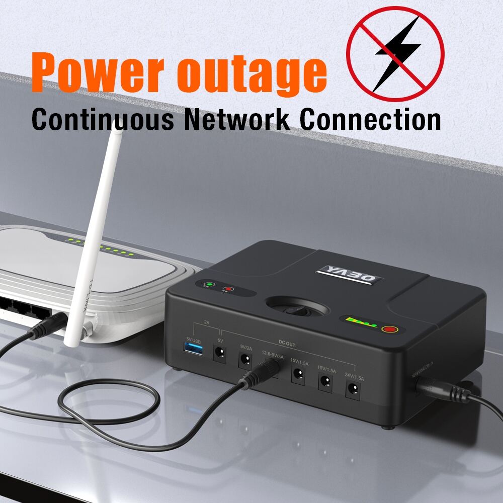 Mit 7 unabhängigen Stromversorgungsschnittstellen kann die Mini-USV mehrere Geräte gleichzeitig mit Strom versorgen. Dadurch ist sie eine ideale zentrale Backup-Lösung für Netzwerkgeräte, Überwachungssysteme, Smart-Home-Zentralen und andere wichtige Elektronikgeräte.
