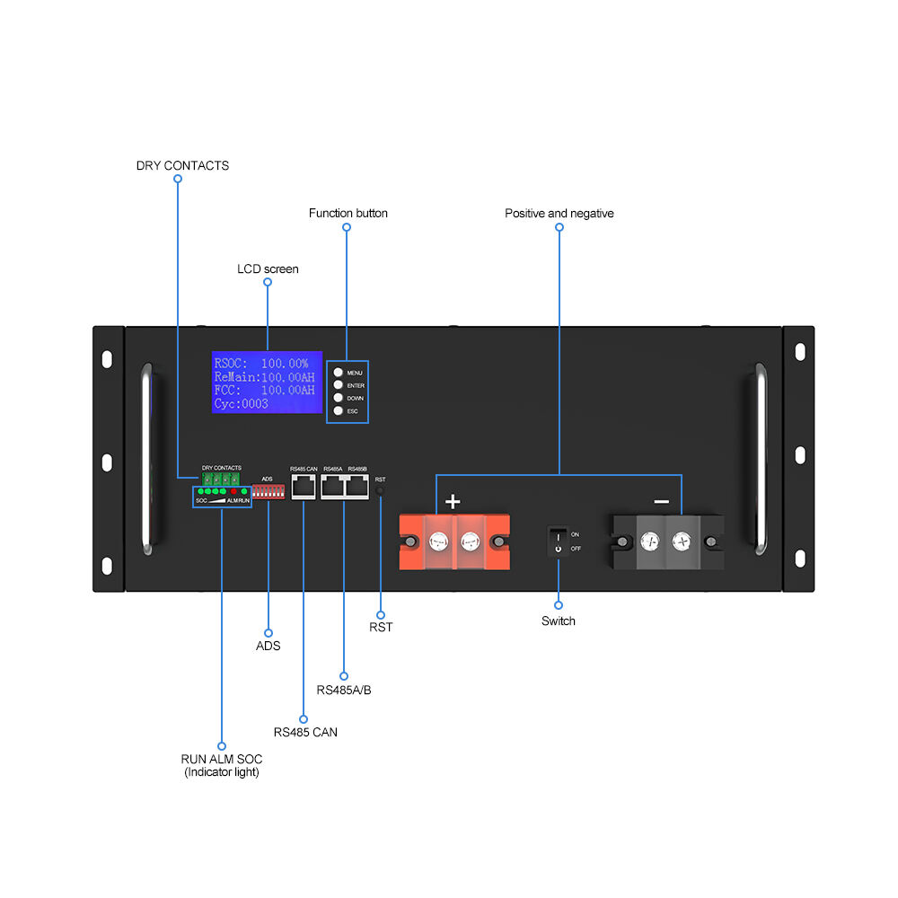 बैटरी में 19-इंच रैक-माउंट फॉर्म फैक्टर (482.6 × 510 × 155 मिमी) है, जो ऊर्जा कैबिनेट या मॉड्यूलर पावर सिस्टम में बिना किसी रुकावट के एकीकरण की अनुमति देता है। क्षमता बढ़ाने के लिए कई इकाइयों को समानांतर में जोड़ा जा सकता है।