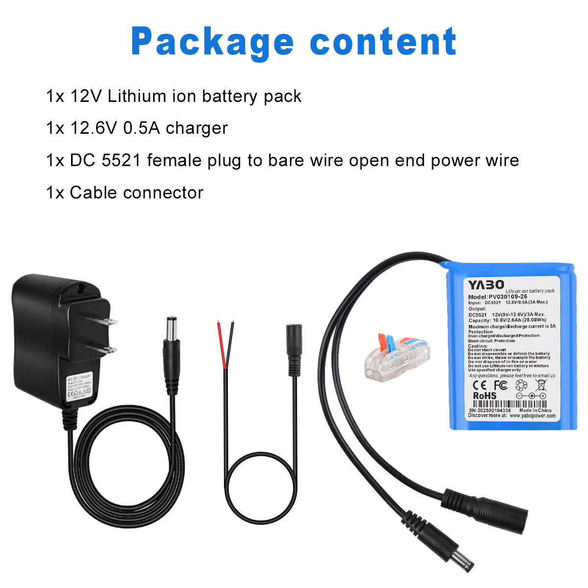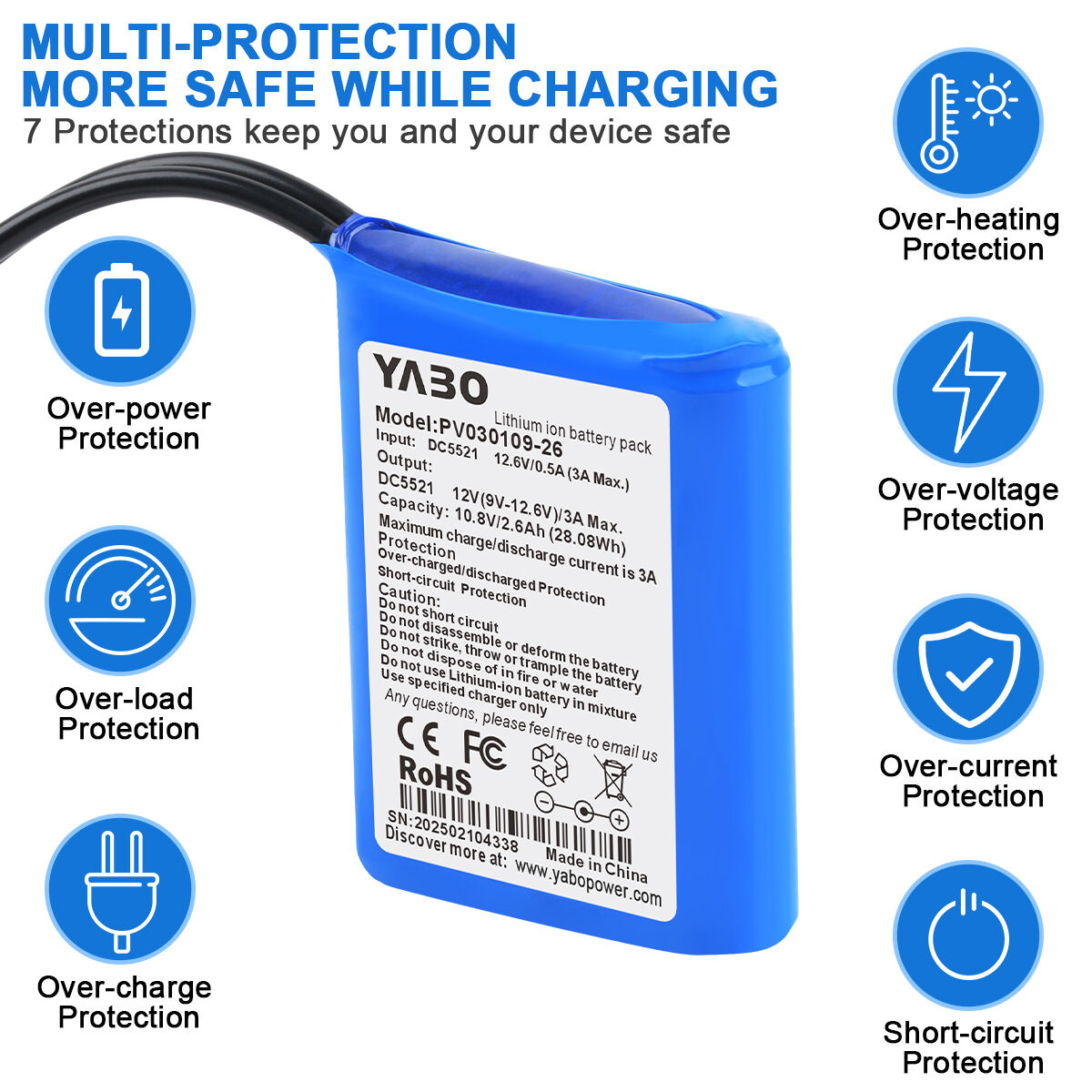 The YABO 12V 2600mAh Rechargeable Lithium-ion Battery Pack is an excellent solution for users who need reliable, compact, and safe 12V power without unnecessary bulk or complexity. Designed for small projects, portable devices, and low-power systems, it delivers consistent performance while remaining easy to integrate and manage.