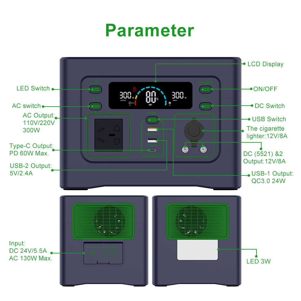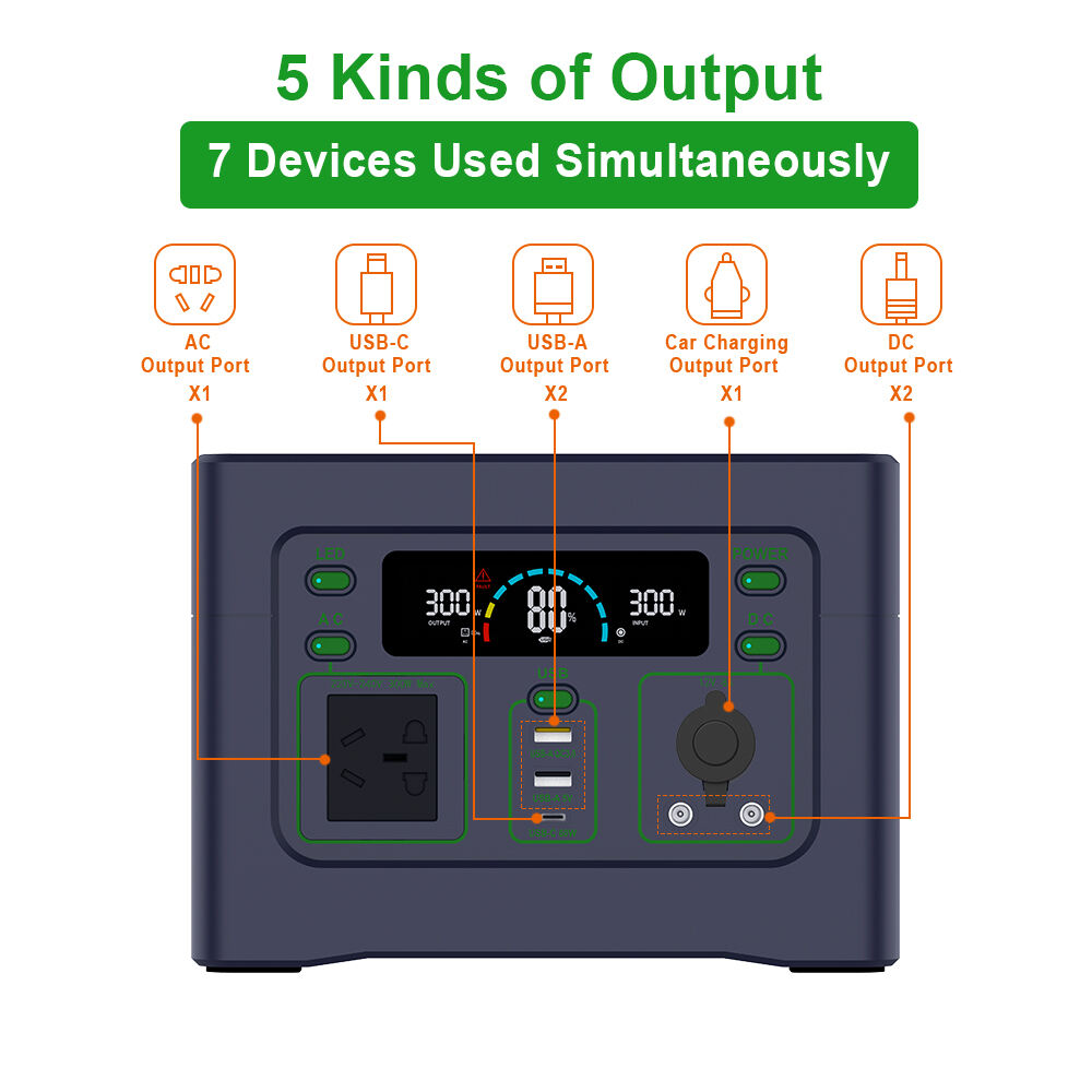 - 288Wh (90Ah LiFePO4) capacity, 300W high power and pure sine wave output for stable device use.