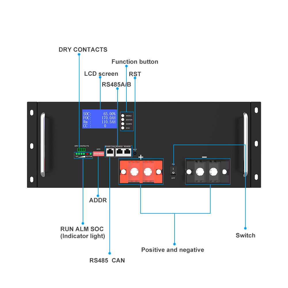 The rack-mounted structure of the YB-UT48170H allows for easy installation in standard 19-inch cabinets or energy storage racks. Its modular design supports parallel connection of multiple battery units, enabling flexible capacity expansion as energy demands grow.